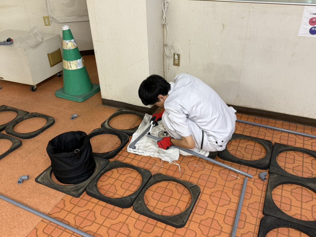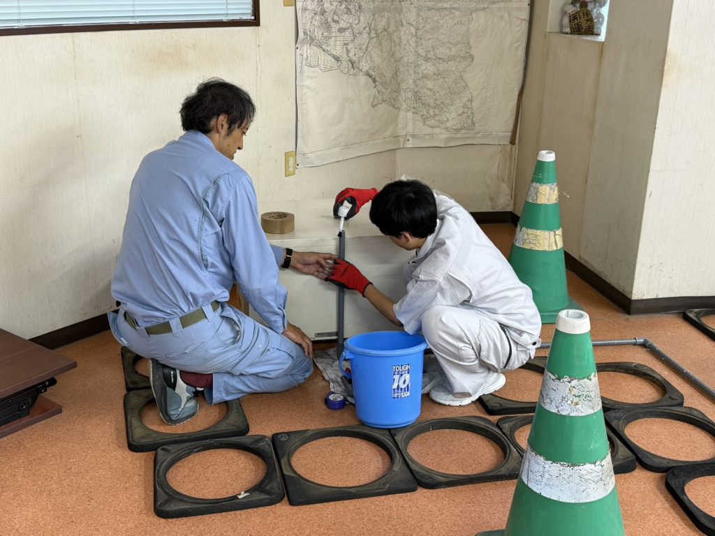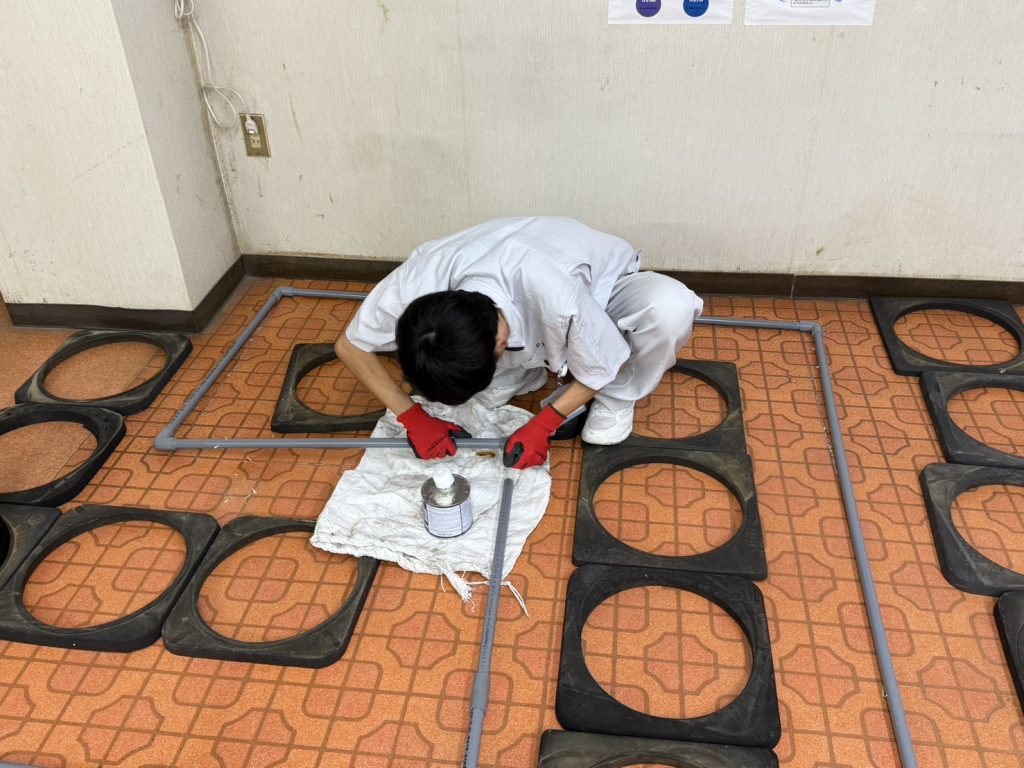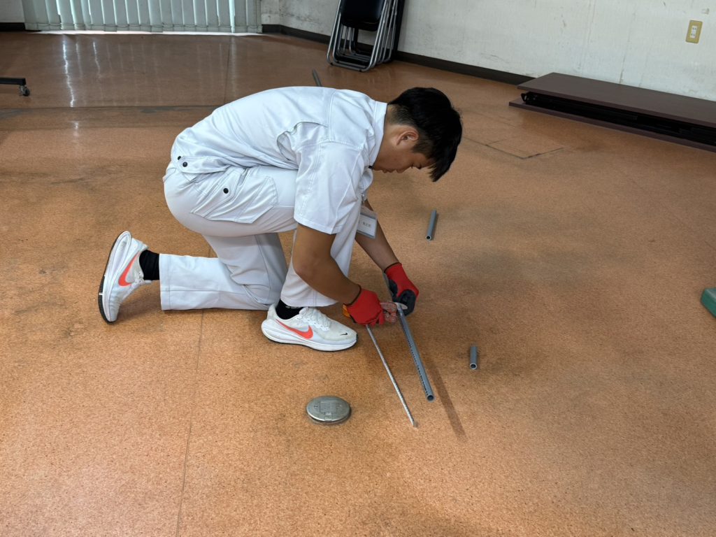常務の指導の下、一生懸命配管の作業を体験していただきました♪