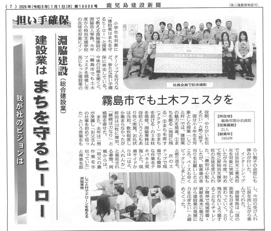 令和8年1月1日の鹿児島建設新聞にて